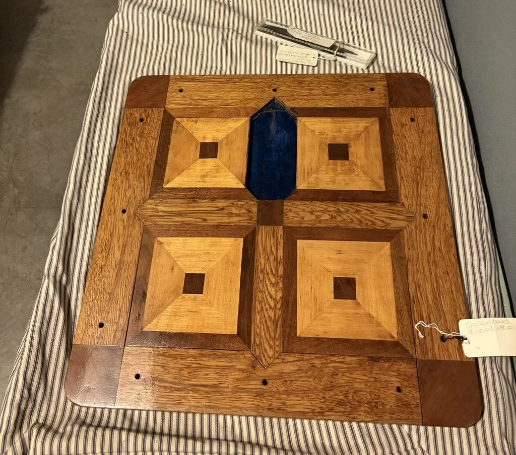 A beautifully hand-crafted wooden checkerboard, created by an inmate at the Iowa State Penitentiary in Fort Madison sometime in the late 1800s.
