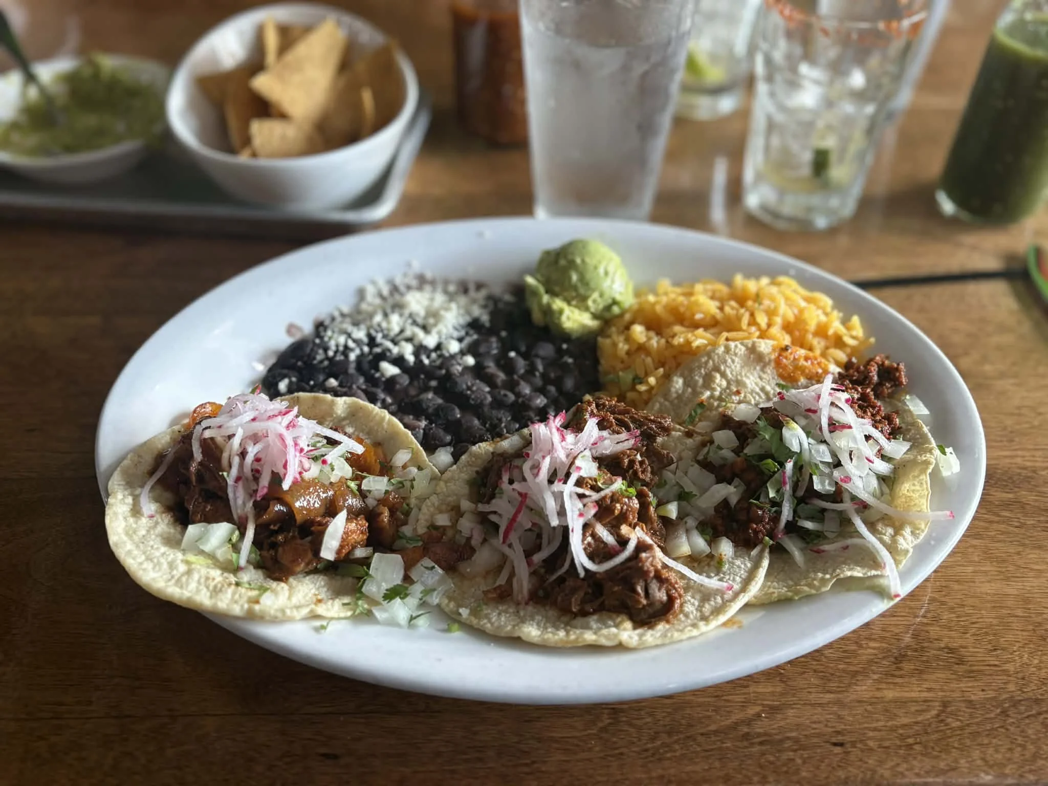 Homemade tortillas, fresh made guacamole, and 3 tasty tacos; al pastor, barbacoa and chorizo!