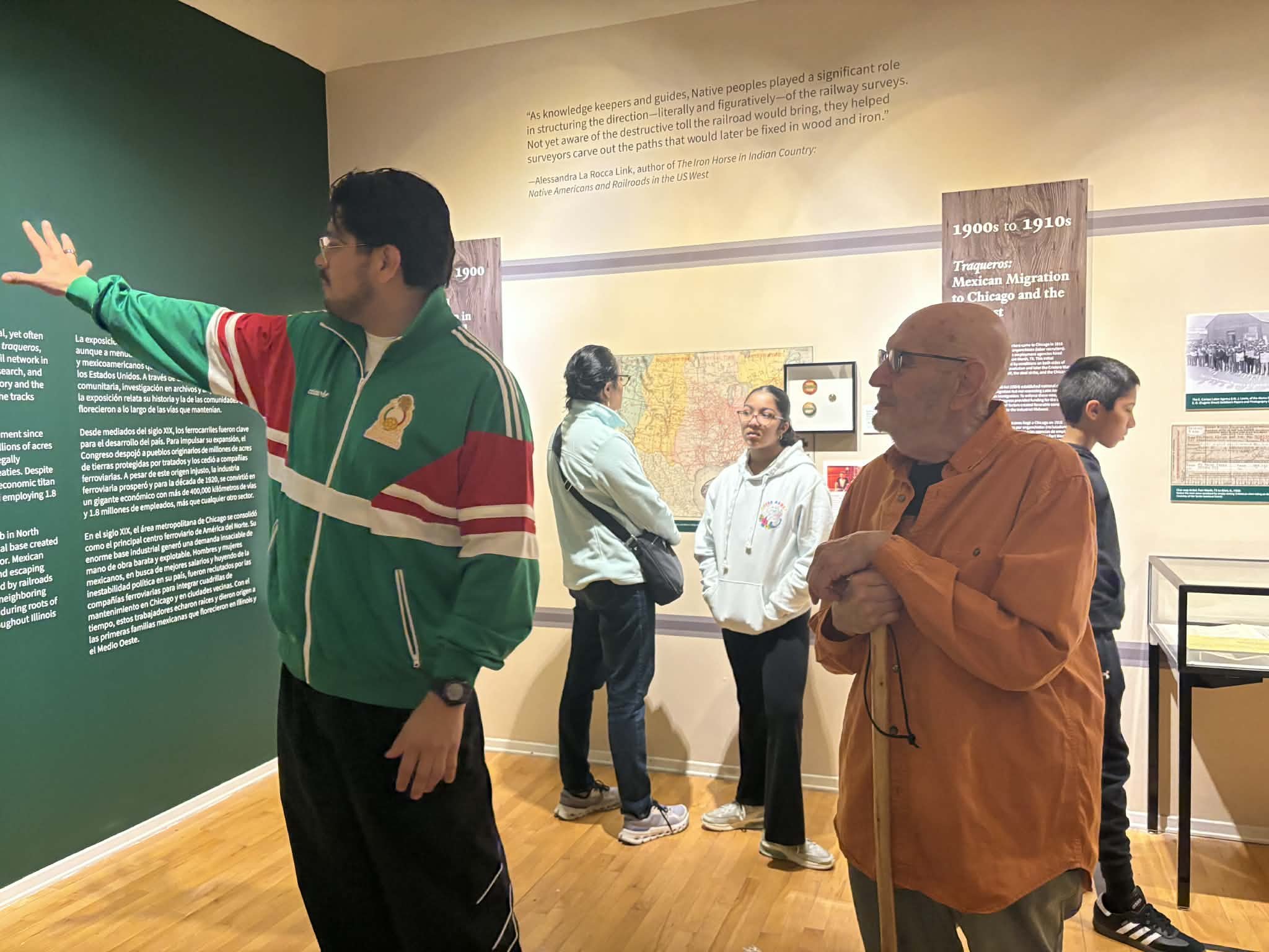 Our next stop was the National Museum of Mexican Art, where we experienced the powerful exhibit Rieles y Raíces. This exhibit tells the story of traqueros—Mexican railroad workers who laid and maintained track across the country. Many of these workers settled in towns like Fort Madison, shaping the very foundation of our community.