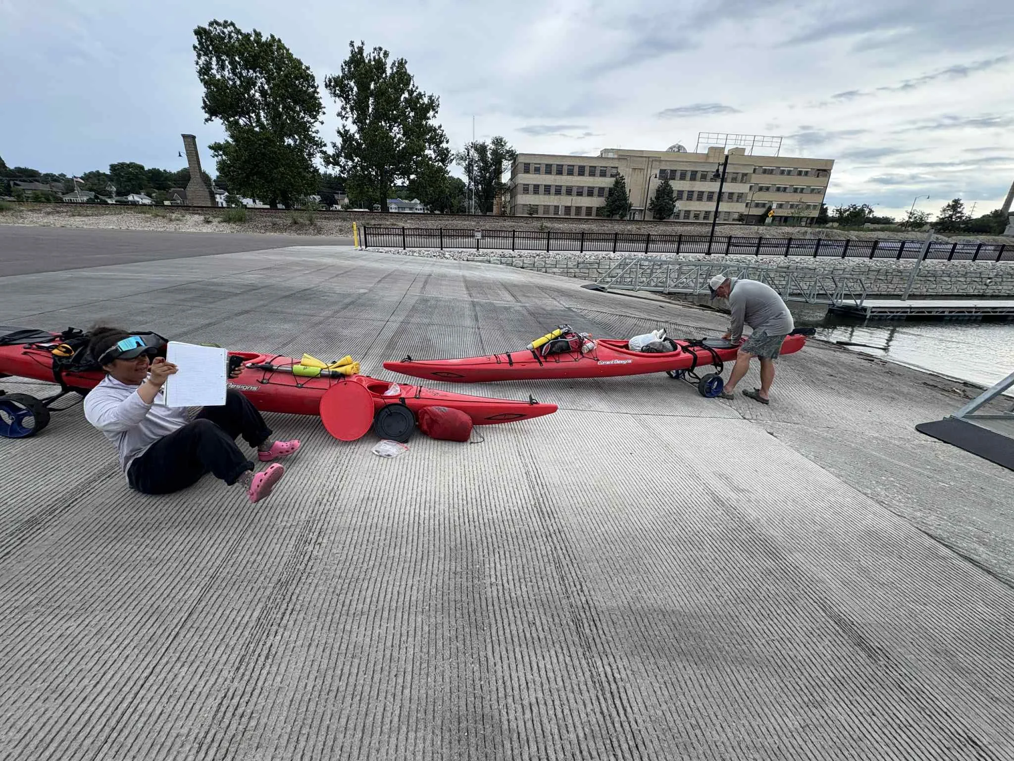 Later that evening, they reached out for help—and I was happy to lend a hand. We secured their boats in the Santa Fe Depot Baggage Room and got them checked in for a comfortable night at Cobblestone Inn & Suites where they could grab some food nearby and Becky could finally find a “cold pop”! After a night of dry clothes, hot showers, and a well-earned rest, they were ready to get back on the water. I met them again at the Fort Madison Marina this morning, where they launched southbound at 8:30 AM—recharged and full of gratitude.